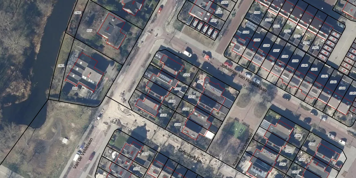 Gebruik de zoekbalk of klik op een perceel om informatie over het perceel te bekijken.