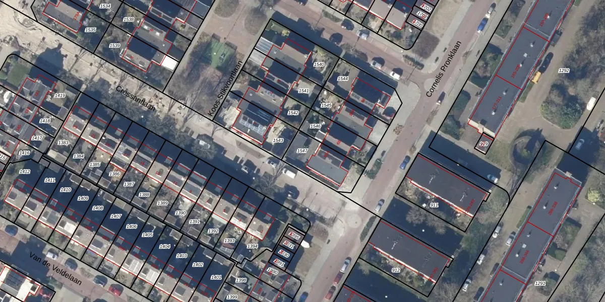 Gebruik de zoekbalk of klik op een perceel om informatie over het perceel te bekijken.