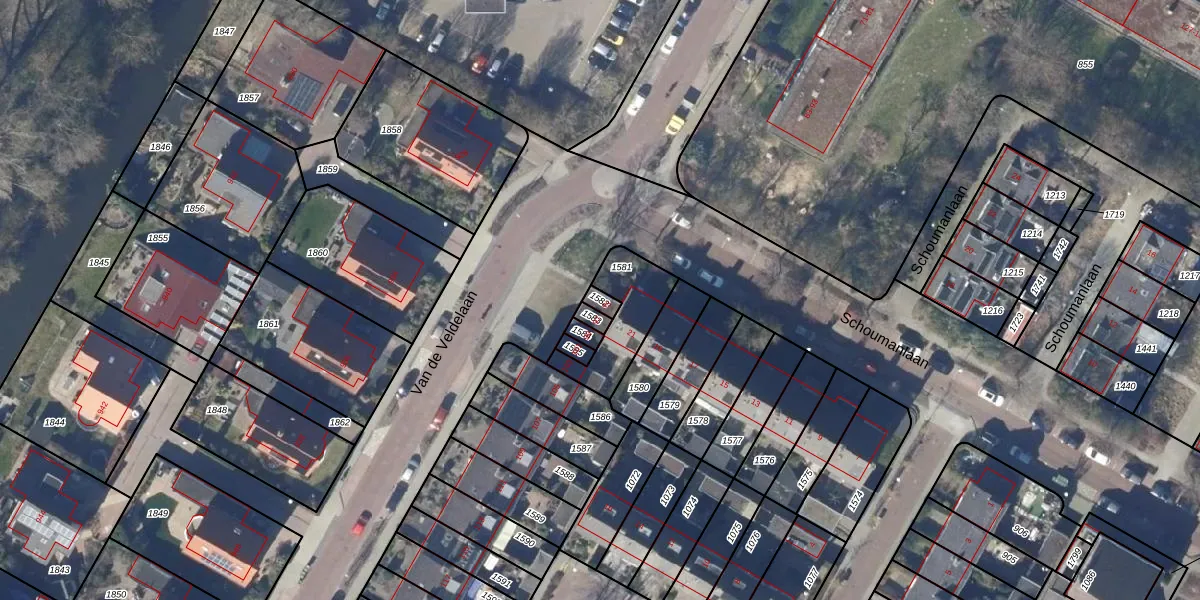 Gebruik de zoekbalk of klik op een perceel om informatie over het perceel te bekijken.