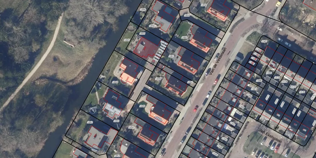 Gebruik de zoekbalk of klik op een perceel om informatie over het perceel te bekijken.