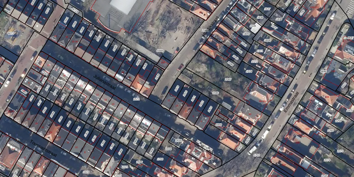 Gebruik de zoekbalk of klik op een perceel om informatie over het perceel te bekijken.