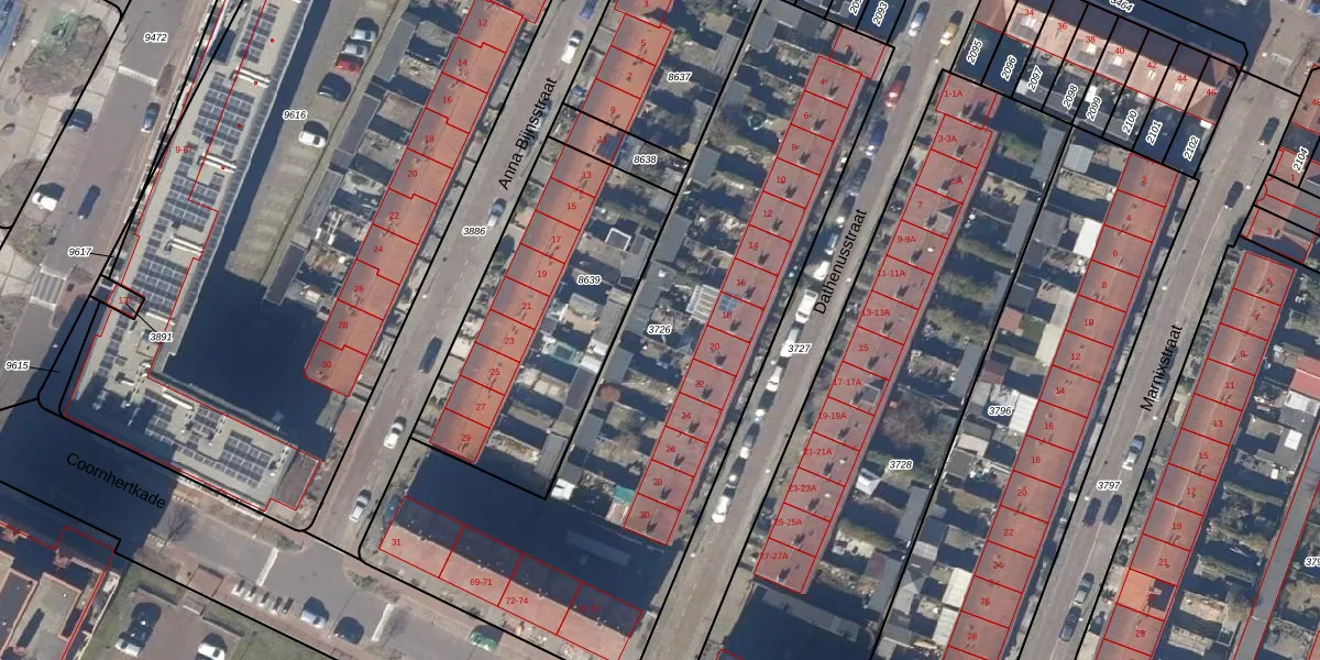 Gebruik de zoekbalk of klik op een perceel om informatie over het perceel te bekijken.