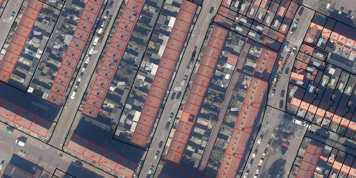 Gebruik de zoekbalk of klik op een perceel om informatie over het perceel te bekijken.