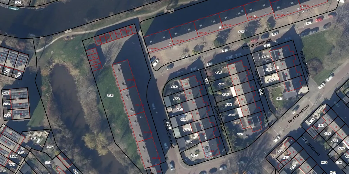 Gebruik de zoekbalk of klik op een perceel om informatie over het perceel te bekijken.