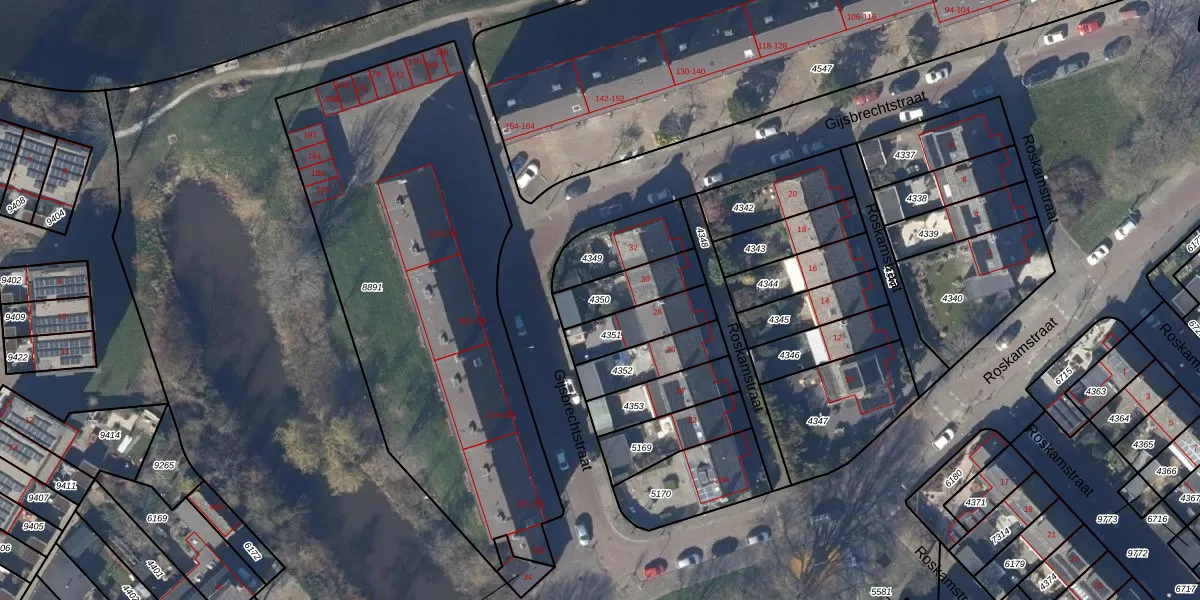 Gebruik de zoekbalk of klik op een perceel om informatie over het perceel te bekijken.
