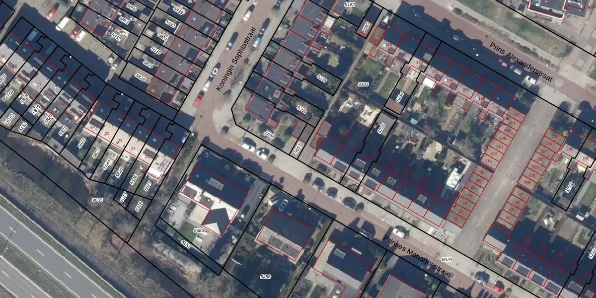 Gebruik de zoekbalk of klik op een perceel om informatie over het perceel te bekijken.