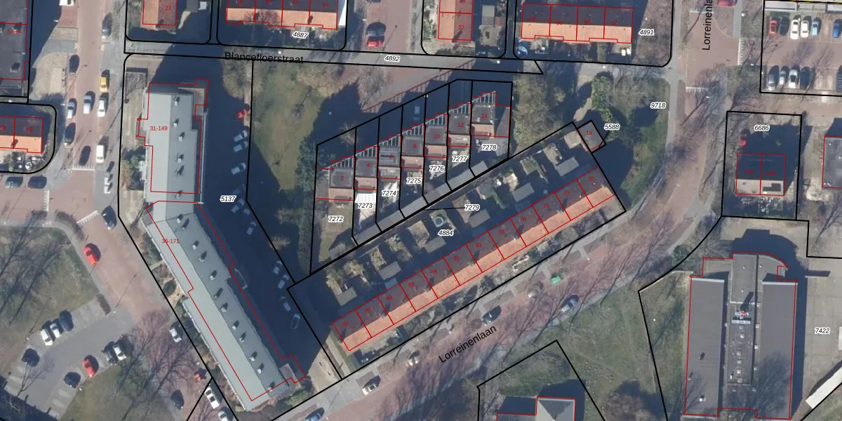 Gebruik de zoekbalk of klik op een perceel om informatie over het perceel te bekijken.