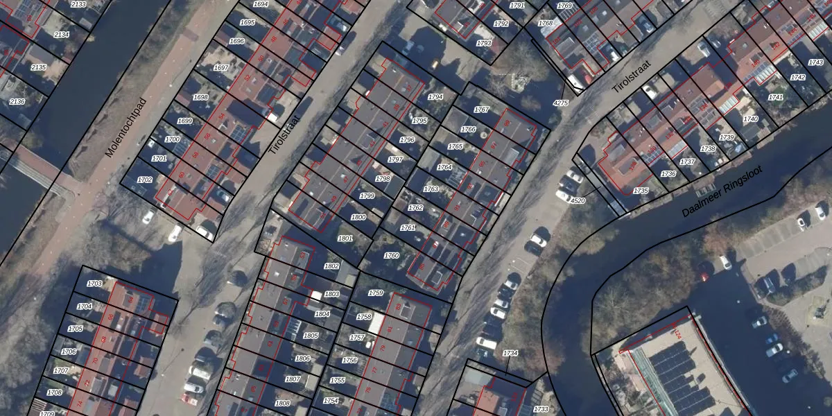 Gebruik de zoekbalk of klik op een perceel om informatie over het perceel te bekijken.