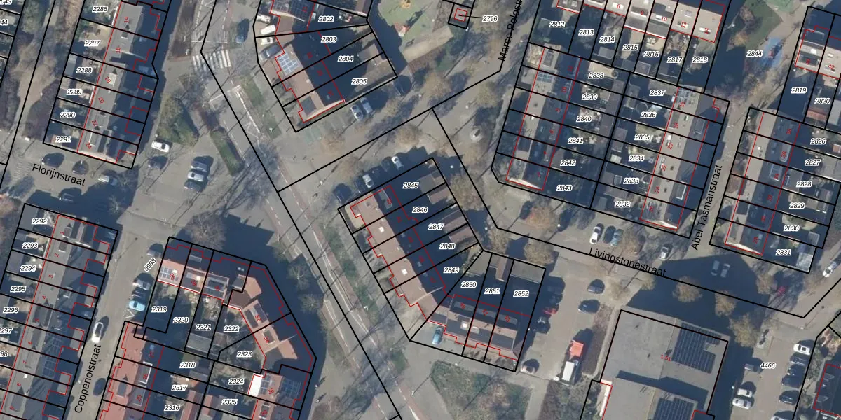 Gebruik de zoekbalk of klik op een perceel om informatie over het perceel te bekijken.
