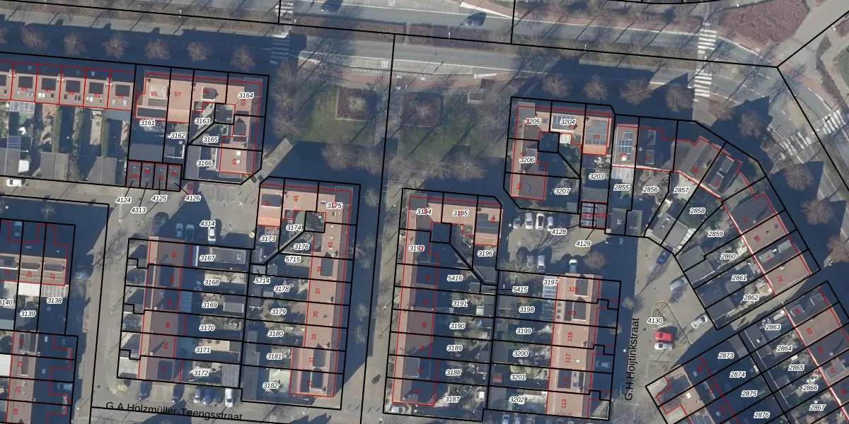 Gebruik de zoekbalk of klik op een perceel om informatie over het perceel te bekijken.