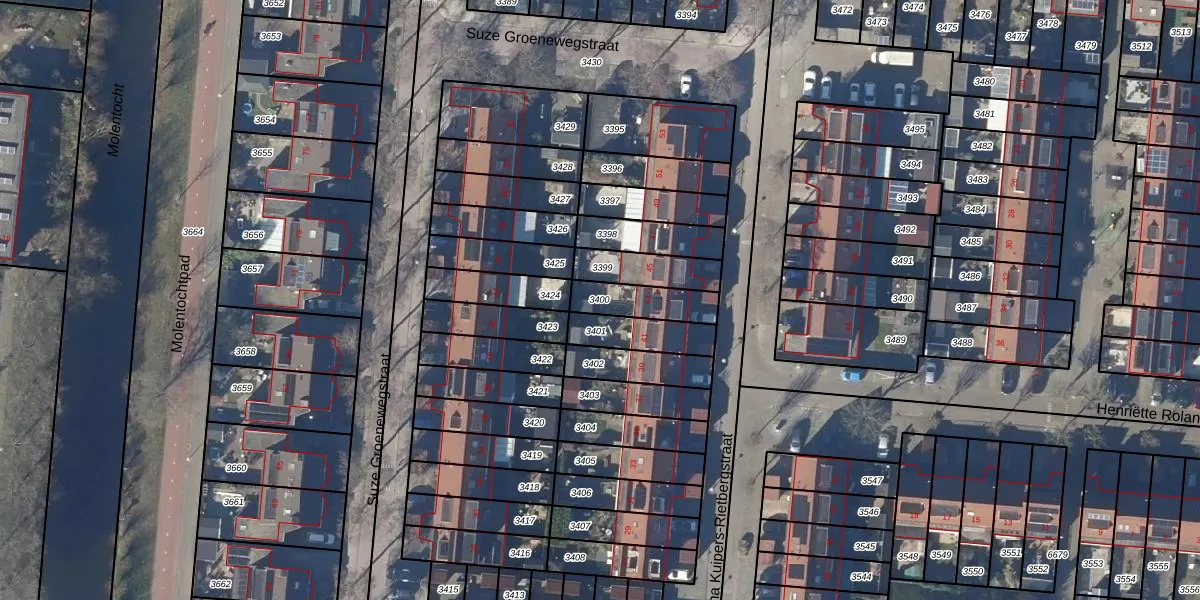 Gebruik de zoekbalk of klik op een perceel om informatie over het perceel te bekijken.