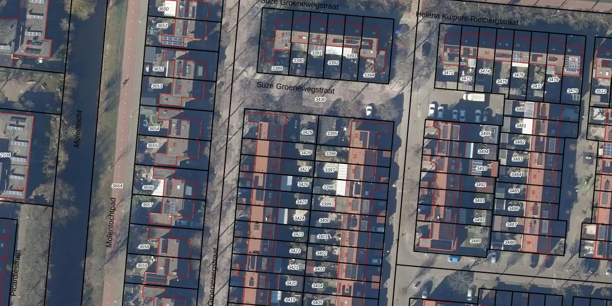 Gebruik de zoekbalk of klik op een perceel om informatie over het perceel te bekijken.