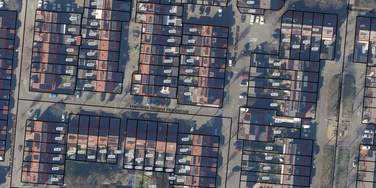 Gebruik de zoekbalk of klik op een perceel om informatie over het perceel te bekijken.