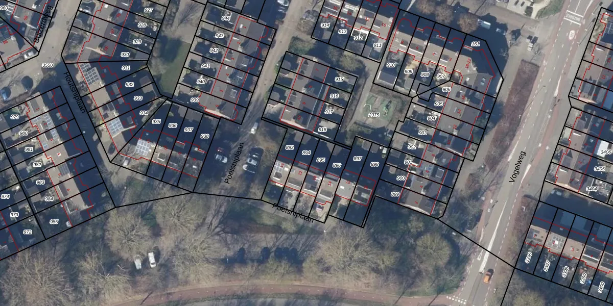 Gebruik de zoekbalk of klik op een perceel om informatie over het perceel te bekijken.