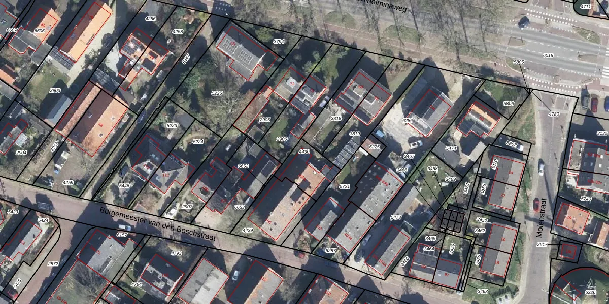 Gebruik de zoekbalk of klik op een perceel om informatie over het perceel te bekijken.