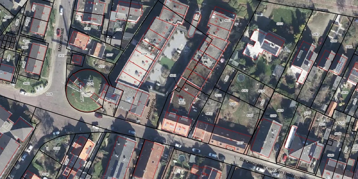 Gebruik de zoekbalk of klik op een perceel om informatie over het perceel te bekijken.