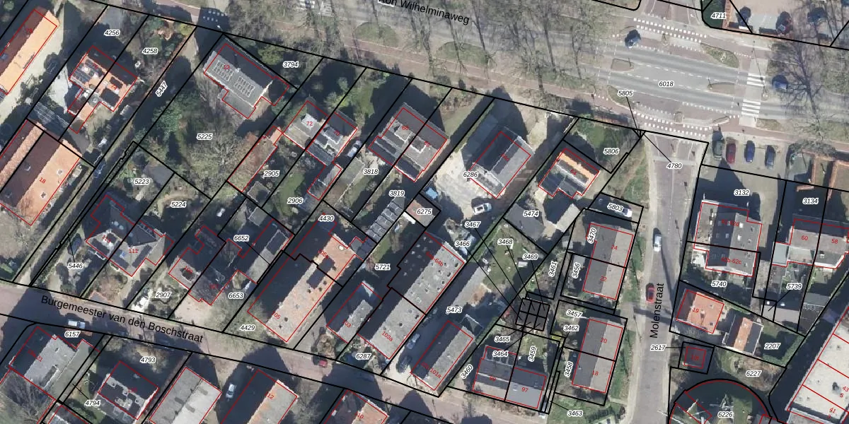 Gebruik de zoekbalk of klik op een perceel om informatie over het perceel te bekijken.