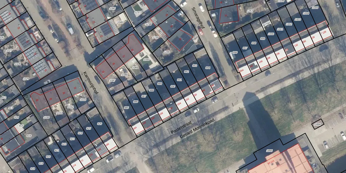 Gebruik de zoekbalk of klik op een perceel om informatie over het perceel te bekijken.