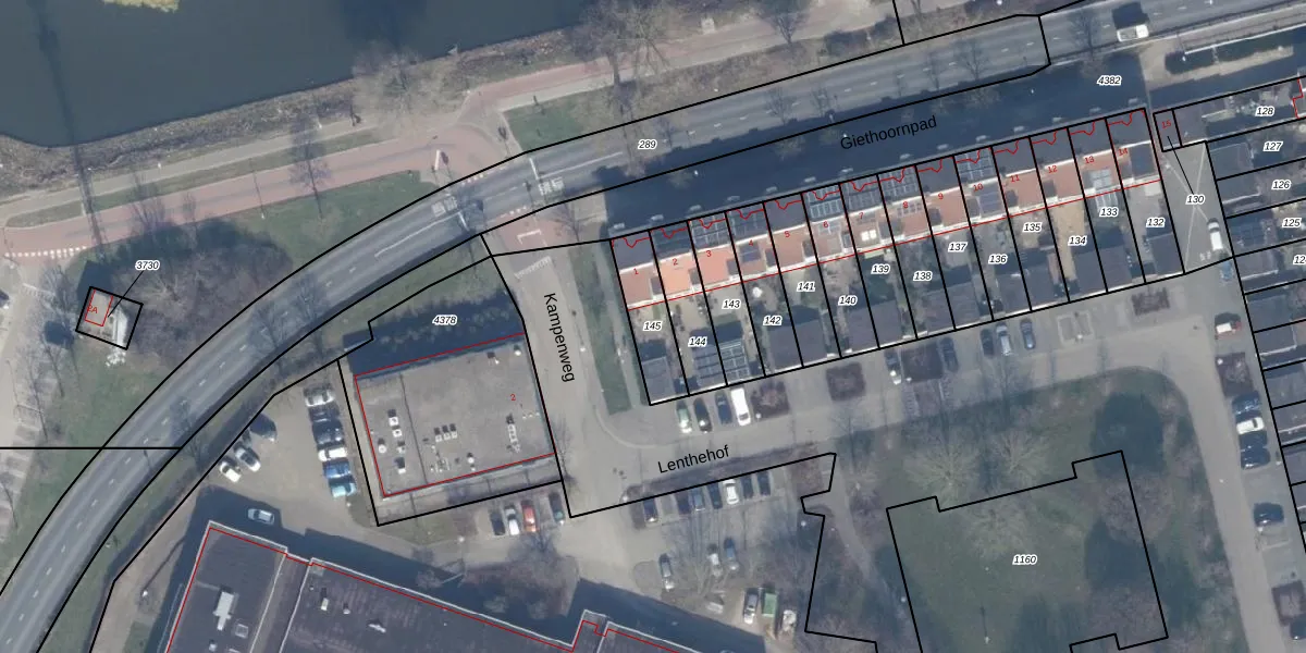 Gebruik de zoekbalk of klik op een perceel om informatie over het perceel te bekijken.