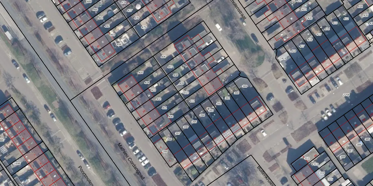 Gebruik de zoekbalk of klik op een perceel om informatie over het perceel te bekijken.