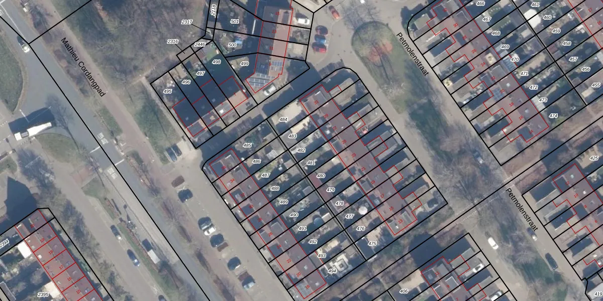Gebruik de zoekbalk of klik op een perceel om informatie over het perceel te bekijken.