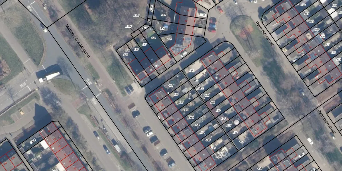 Gebruik de zoekbalk of klik op een perceel om informatie over het perceel te bekijken.
