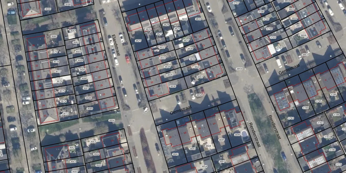 Gebruik de zoekbalk of klik op een perceel om informatie over het perceel te bekijken.