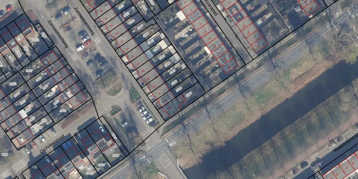 Gebruik de zoekbalk of klik op een perceel om informatie over het perceel te bekijken.