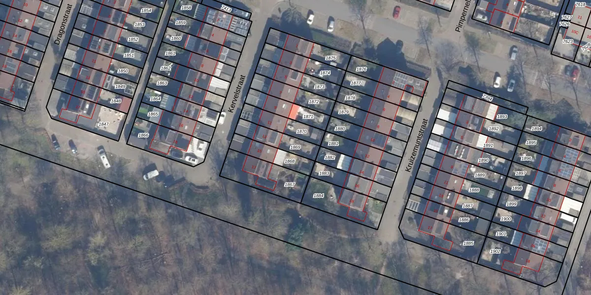 Gebruik de zoekbalk of klik op een perceel om informatie over het perceel te bekijken.
