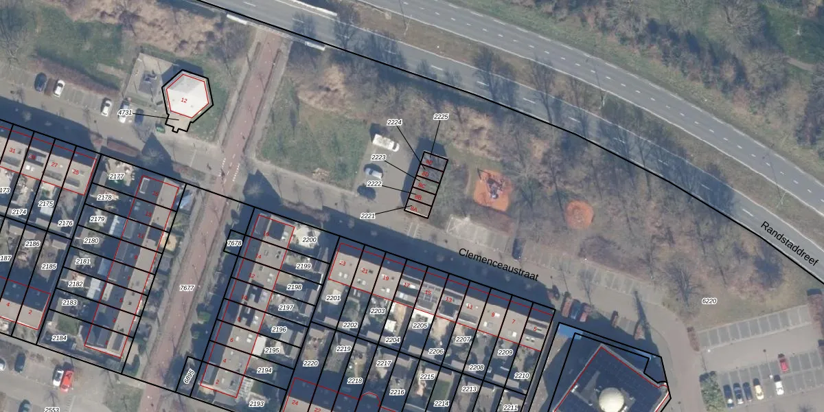 Gebruik de zoekbalk of klik op een perceel om informatie over het perceel te bekijken.