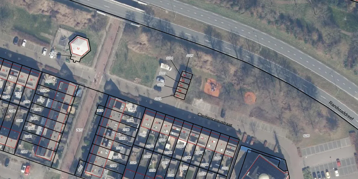 Gebruik de zoekbalk of klik op een perceel om informatie over het perceel te bekijken.
