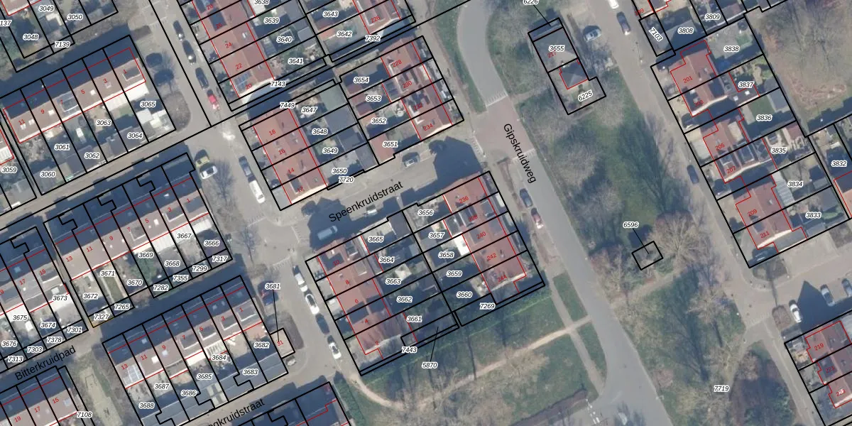 Gebruik de zoekbalk of klik op een perceel om informatie over het perceel te bekijken.