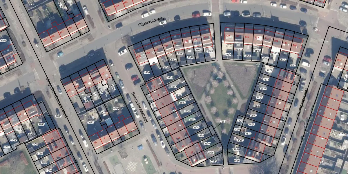 Gebruik de zoekbalk of klik op een perceel om informatie over het perceel te bekijken.