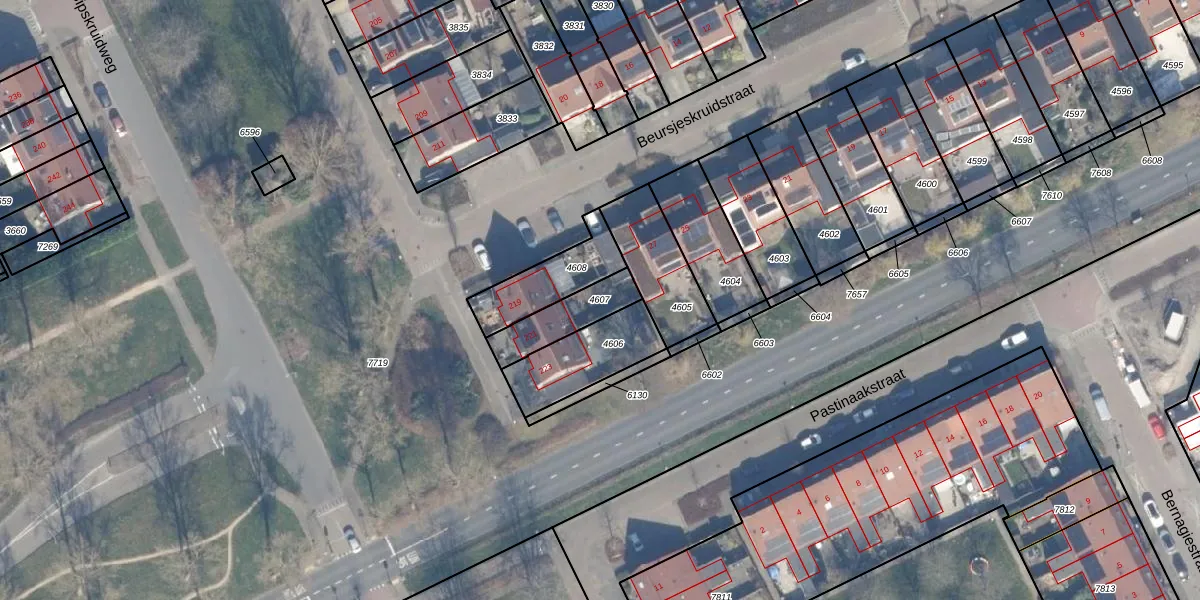 Gebruik de zoekbalk of klik op een perceel om informatie over het perceel te bekijken.