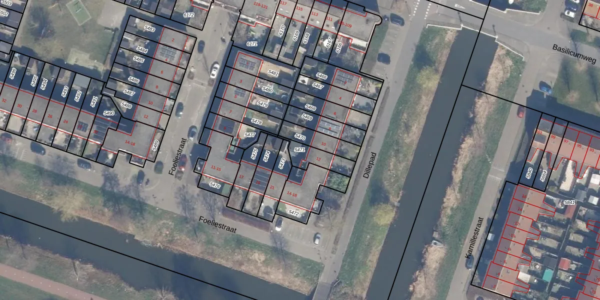 Gebruik de zoekbalk of klik op een perceel om informatie over het perceel te bekijken.