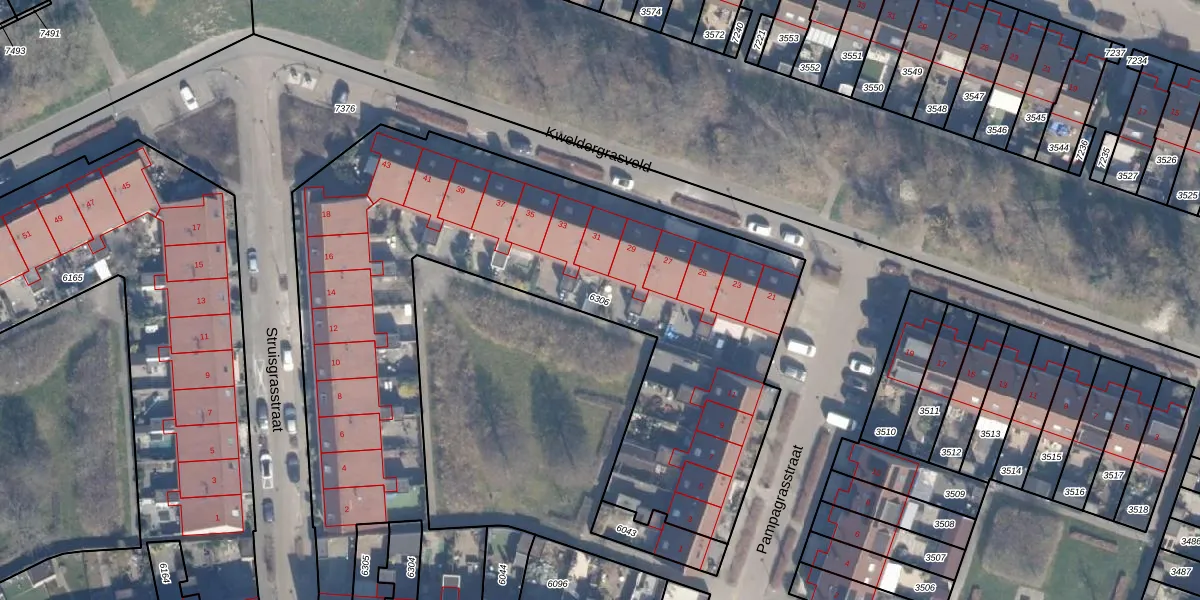 Gebruik de zoekbalk of klik op een perceel om informatie over het perceel te bekijken.