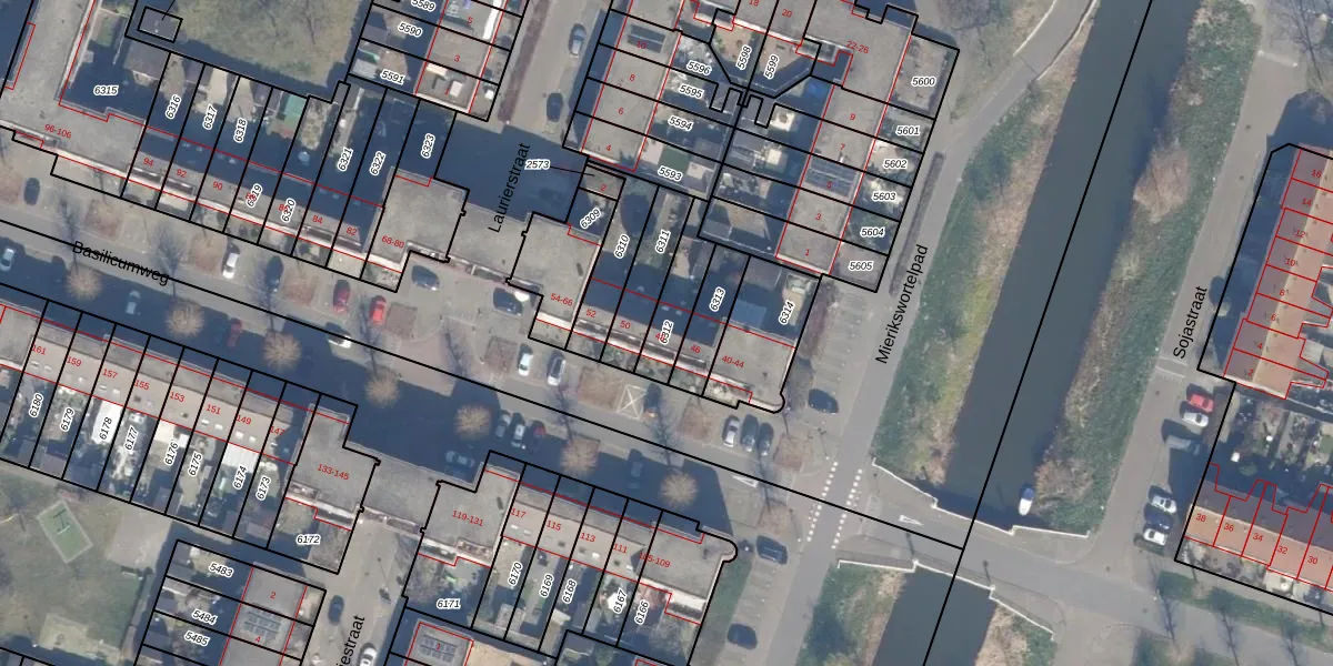 Gebruik de zoekbalk of klik op een perceel om informatie over het perceel te bekijken.