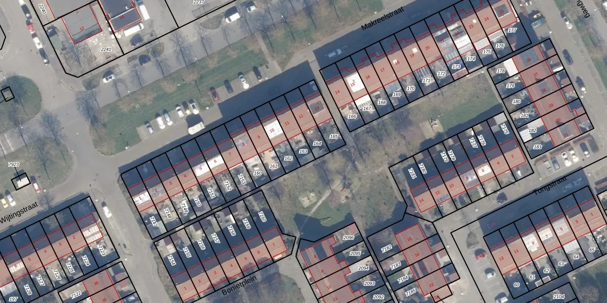 Gebruik de zoekbalk of klik op een perceel om informatie over het perceel te bekijken.