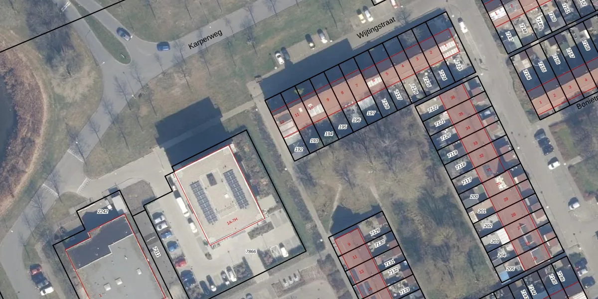 Gebruik de zoekbalk of klik op een perceel om informatie over het perceel te bekijken.