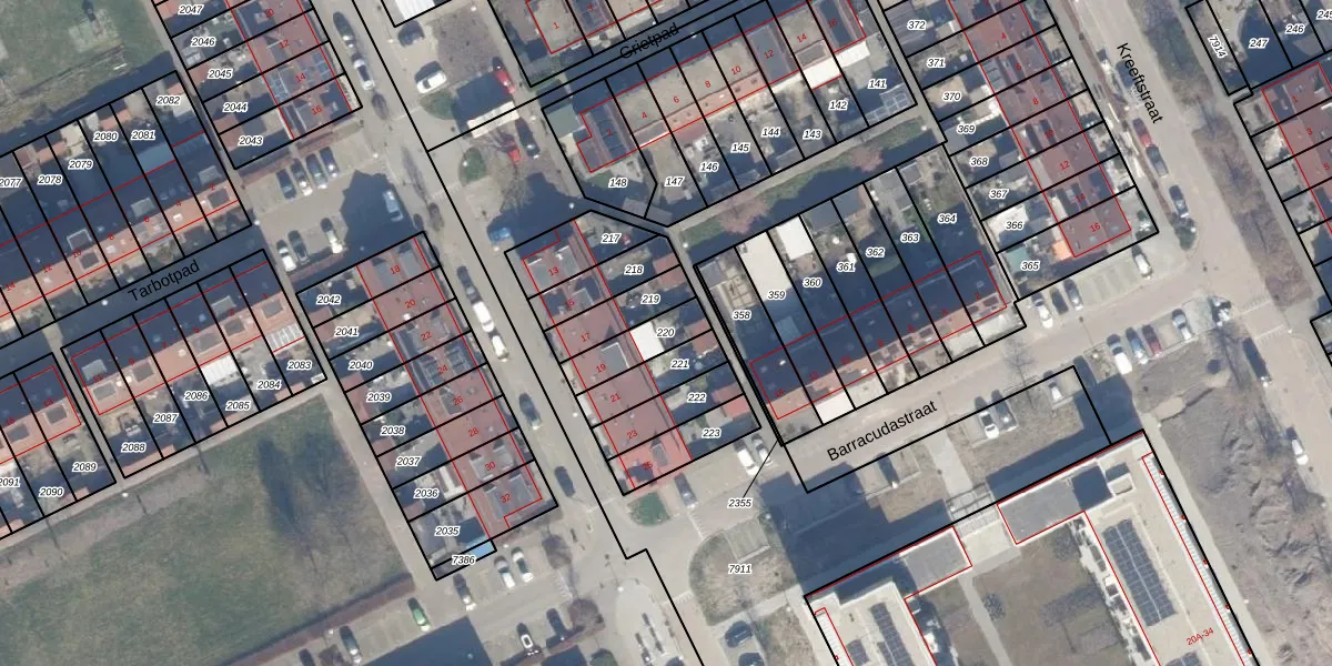 Gebruik de zoekbalk of klik op een perceel om informatie over het perceel te bekijken.
