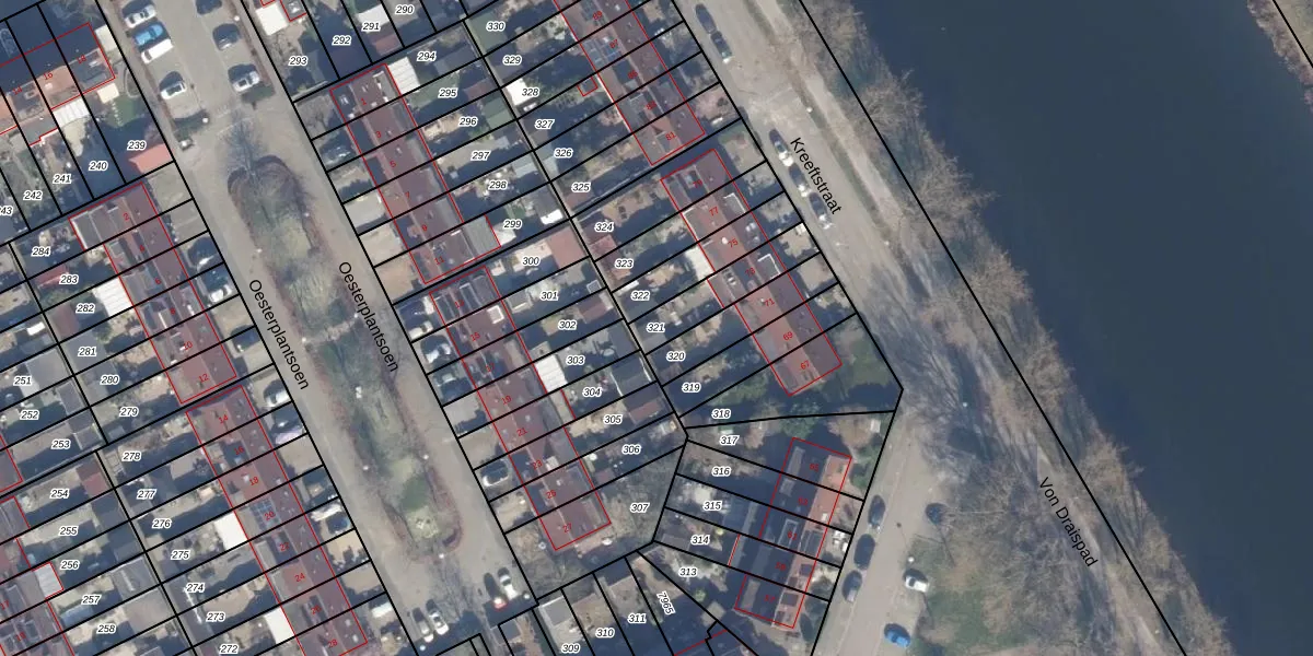 Gebruik de zoekbalk of klik op een perceel om informatie over het perceel te bekijken.