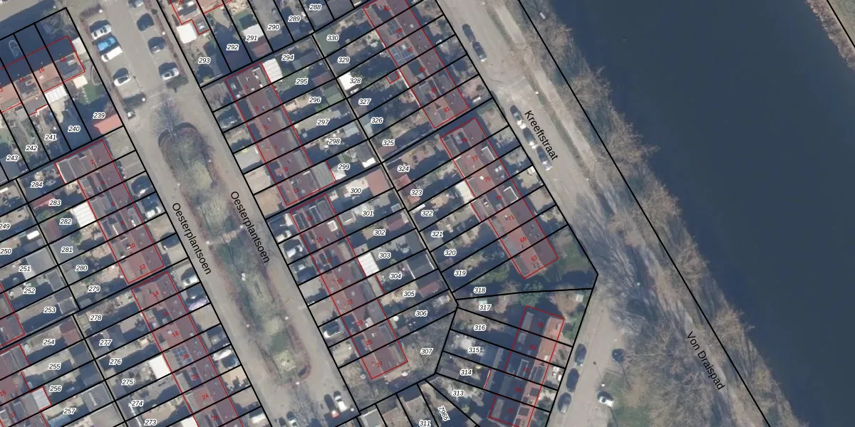 Gebruik de zoekbalk of klik op een perceel om informatie over het perceel te bekijken.