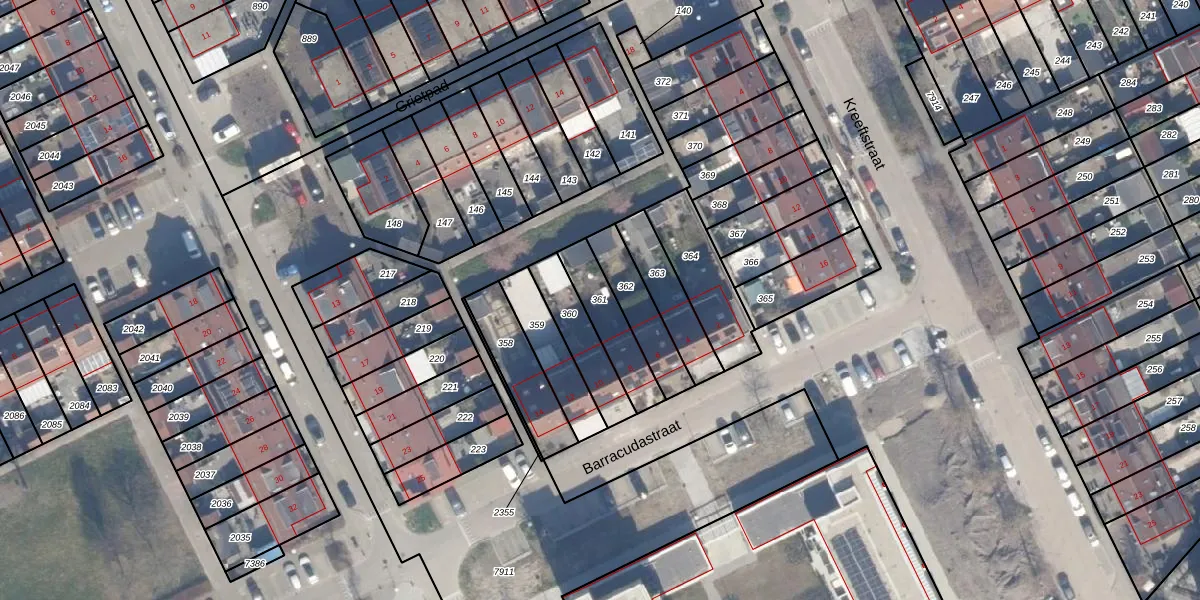 Gebruik de zoekbalk of klik op een perceel om informatie over het perceel te bekijken.