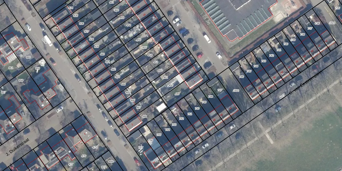 Gebruik de zoekbalk of klik op een perceel om informatie over het perceel te bekijken.