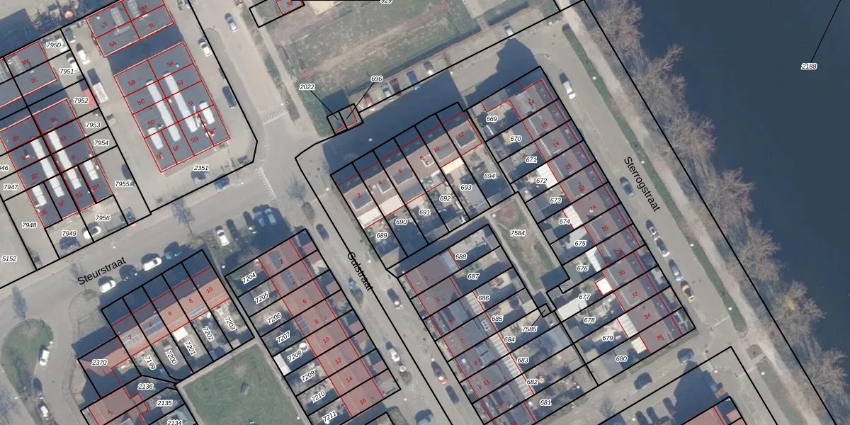 Gebruik de zoekbalk of klik op een perceel om informatie over het perceel te bekijken.