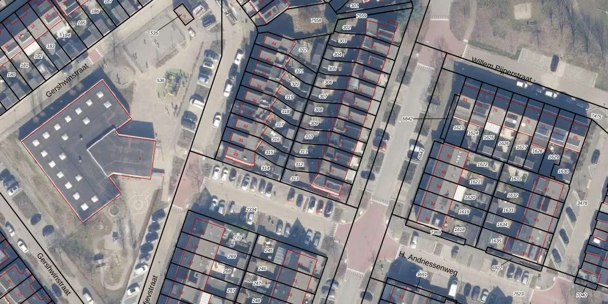 Gebruik de zoekbalk of klik op een perceel om informatie over het perceel te bekijken.