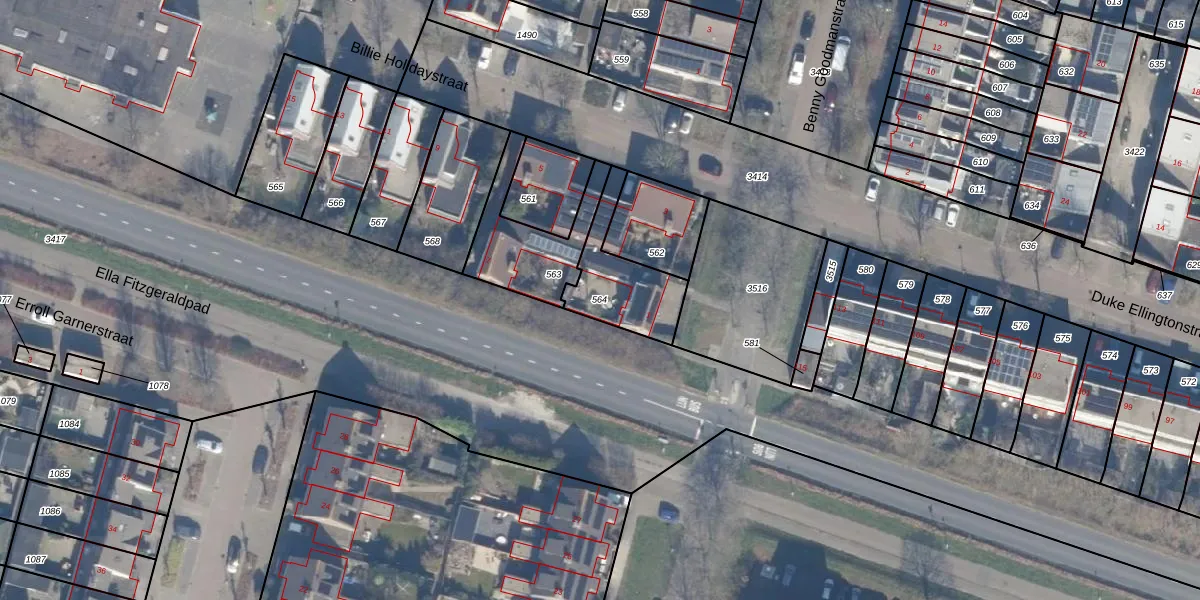 Gebruik de zoekbalk of klik op een perceel om informatie over het perceel te bekijken.