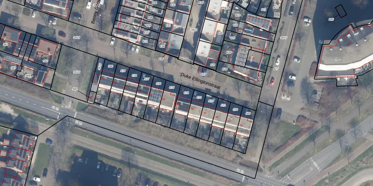 Gebruik de zoekbalk of klik op een perceel om informatie over het perceel te bekijken.
