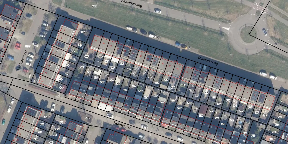 Gebruik de zoekbalk of klik op een perceel om informatie over het perceel te bekijken.