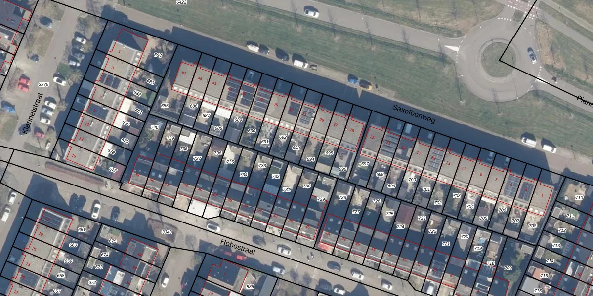 Gebruik de zoekbalk of klik op een perceel om informatie over het perceel te bekijken.